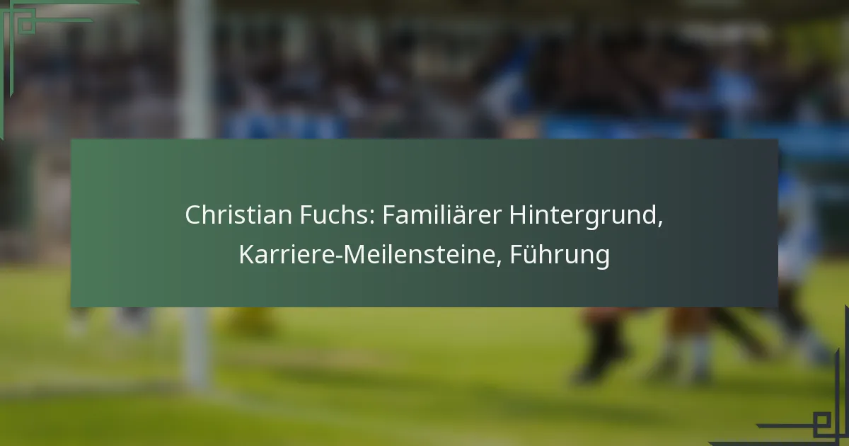 Christian Fuchs, ein gebürtiger Österreicher, hat einen familiären Hintergrund, der seine Karriere und seinen Führungsstil maßgeblich geprägt hat. Während seiner Fußballreise hat er bedeutende Meilensteine erreicht, sein Talent und seine Hingabe unter Beweis gestellt und Führungsrollen übernommen, die einen bleibenden Einfluss auf die Teams hatten, in denen er gespielt hat. Fuchs verkörpert effektive Führung durch sein Engagement für Zusammenarbeit und strategische Entscheidungsfindung und treibt bedeutende Initiativen in seinen beruflichen Bestrebungen voran.